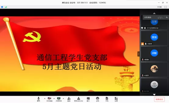 本网讯(通讯员 周雯琪)为深入学习贯彻习近平总书记系列重要讲话精神,认真落实上级各项决策部署,时刻绷紧疫情防控这根弦,进一步发挥学生党员的先锋模范作用,结合支部实际情况,5月24日下午,yl23455永利官网通信工程学生党支部全体党员通过腾讯会议开展5月支部主题党日活动,本次会议由支部副书记王万莹同志主持。